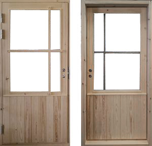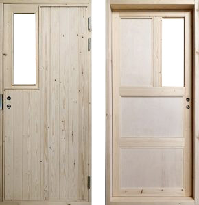 Lämmin mökkiovi Ulkoa ja sisältä